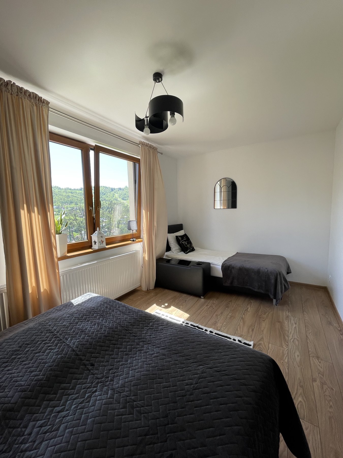 Do apartamentu przynależy jedna 3-osobowa sypialnia, z dwoma łóżkami (jedne dwuosobowe (160×200) oraz jednoosobowe (90×200)) z wygodnymi skórzanymi zagłówkami oraz szafkami nocnymi, oraz z dużą nowoczesną łazienką oraz małą garderobą.