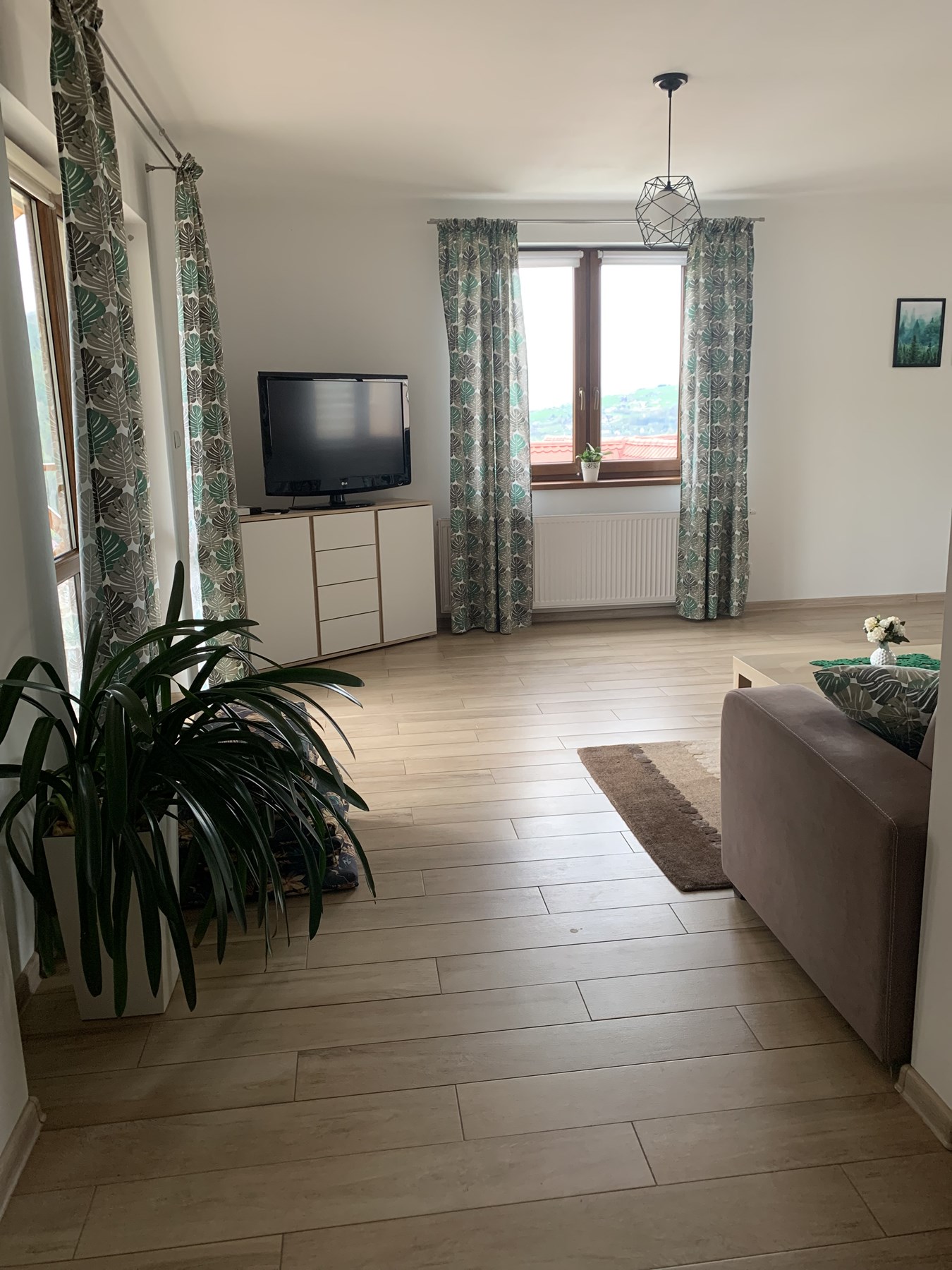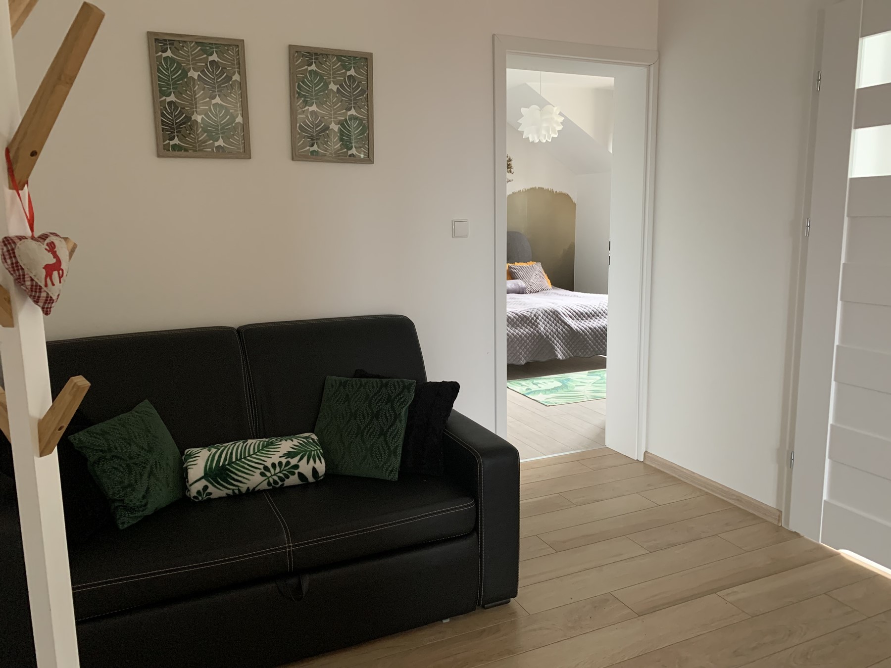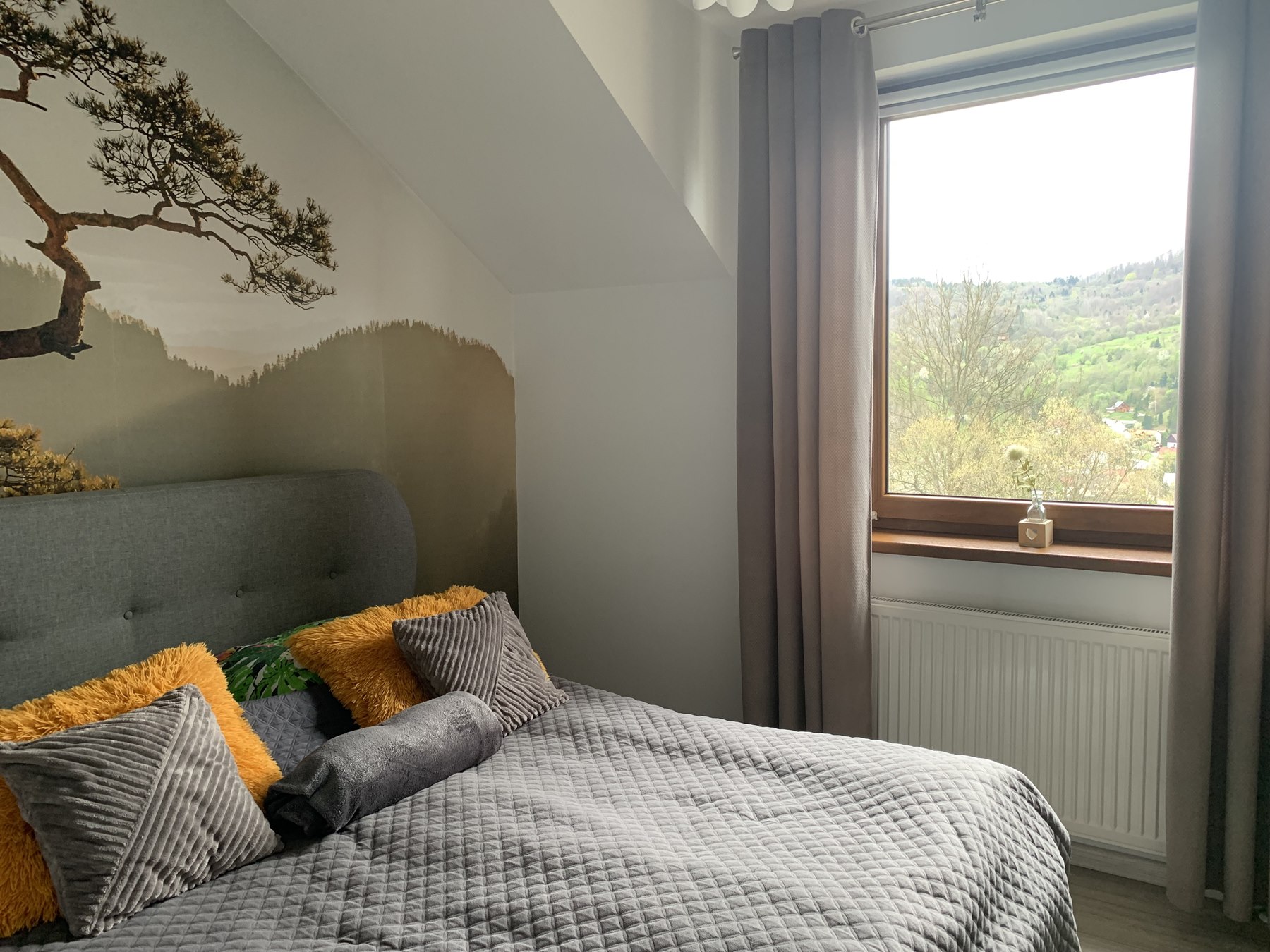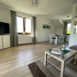 Apartament Widokowy to luksusowy apartament, utrzymany w nowoczesnym, prowansalskim stylu przeznaczony dla 4 – 6 osób. Piękne wykończenie oraz niezwykła dbałość o każdy szczegół zadowoli najbardziej wymagających naszych Gości. Apartament obejmuje przestronny salon z wygodną, dużą i rozkładaną kanapą narożną i TV oraz z wyjściem na widokowy taras, w pełni wyposażoną kuchnię (zmywarka, lodówka, płyta indukcyjna, mikrofala, ekspres do kawy, czajnik elektryczny, komplet garnków, patelni, naczyń, zastawa stołowa, przybory kuchenne) z komfortową częścią jadalną z rozkładanym stołem z 6 krzesłami, przytulną sypialnię z dużym dwuosobowym łożem z tapicerowanym zagłówkiem i szafą oraz nowoczesną i przestronną łazienkę z prysznicem. W apartamencie została wydzielona część ze skórzaną rozkładaną kanapą i stoliczkiem, gdzie można w spokoju poczytać ulubioną książkę.