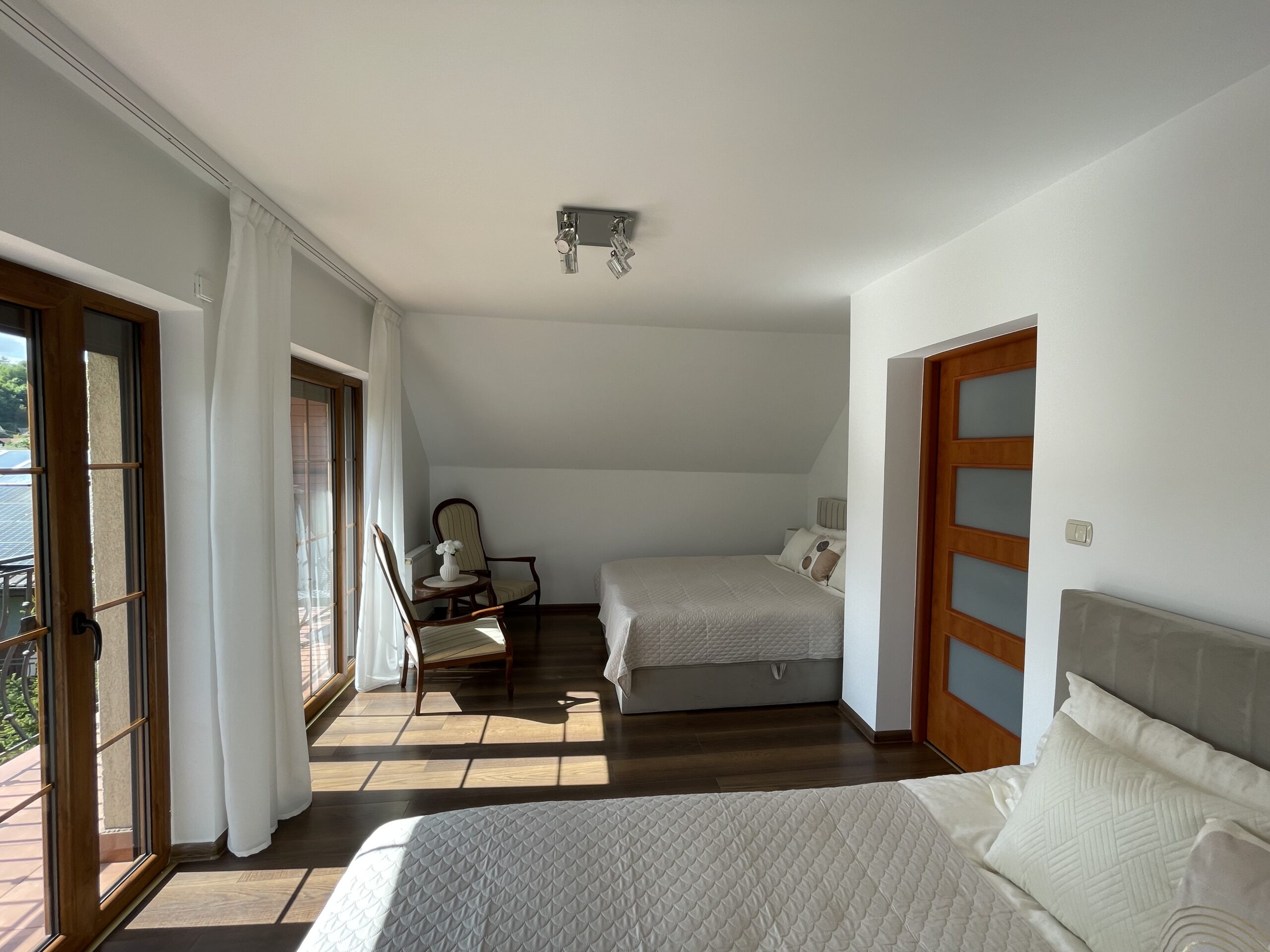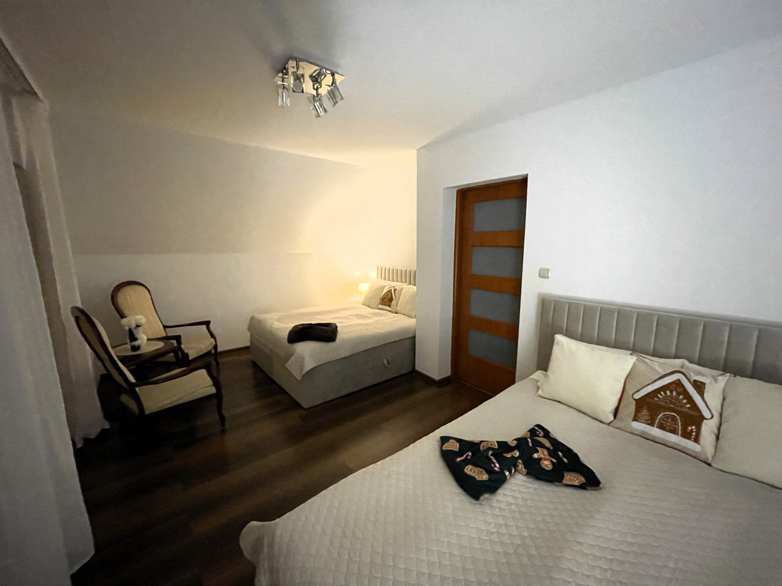 Obiekt składa się z 3 sypialni, wielkiego salonu wyposażonego w stół bilardowy, piłkarzyki i kominek, osobnej kuchni z jadalnią, strefy relaksu z siłownią oraz sauną. Każda sypialnia posiada balkon z widokami, a z salonu jest wyjście na taras wyposażony w meble ratanowe. W odległości 50m znajdują się kaskady na rzece Grajcarek z możliwością wejścia do rzeki i rozstawienia w niej leżaka :). Są one też wymarzonym miejscem do schłodzenia się w upalne dni po górskich wycieczkach lub zabawę dla dzieci. W obiekcie komfortowo może nocować do 10 osób.